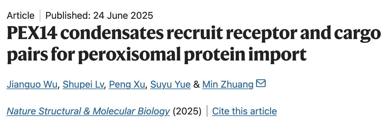 6月24日,黑人巨大精品欧美_黑人巨大精品欧美黑寡妇_黑人巨大精品欧美一区二区_黑人巨大精品欧美一区二区免费_黑人巨大跨种族video_黑人巨大无码中文字幕无码_黑人巨茎大战俄罗斯美女_黑人巨茎大战俄罗斯美女生命科学与技术学院庄敏课题组在《自然-结构与分子生物学》(Nature Structural & Molecular Biology)上在线发表题为“PEX14 condensates recruit receptor and cargo pairs for peroxisomal protein import”的研究论文,揭示了PEX14蛋白通过形成生物凝聚体,高效招募被转运蛋白,并将其递送至过氧化物酶体转运孔道的分子机制。