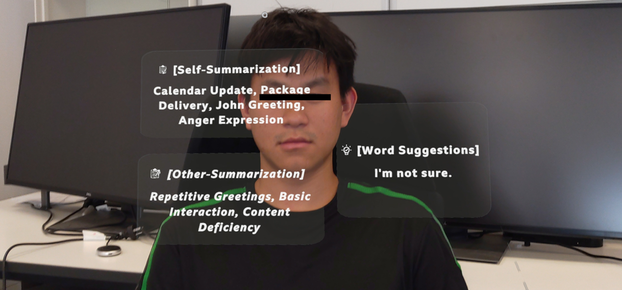 研究团队联合临床专家和ADHD患者开展设计研究,开发了一款名为Understood的MR实时沟通辅助系统(https://github.com/Yu-xinz/UIST2025-8878-Understood)。经过多次迭代,实验室环境下的受试者研究结果表明,系统能够在不打断自然对话的前提下,显著提升ADHD用户的沟通流畅度与自我调节能力,展示了混合现实技术在支持神经多样性群体中的巨大潜力。与现有的干预方法相比,Understood不仅实现了治疗效果向真实场景的可持续转化,还通过最小干扰设计保障了对话的连续性,有效提升了ADHD成人的社交自信和沟通能力。