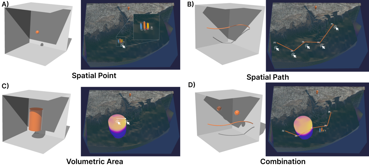 图8|OceanVive系统的四类观测对象:空间点、空间路径、体积区域以及多目标组合。