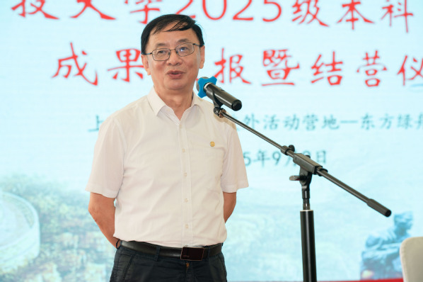 吴强指出,通过两周军事训练,同学们实现了“从青涩到自信的成长蜕变”。结合纪念抗战胜利80周年阅兵的场景和学校的育人理念,吴强强调,新时代大学生应当"将个人理想融入国家发展大局",同时嘱托同学们要重视身心健康,以强健体魄投入新时代建设。他表示,无论是军训场上的烈日考验,还是未来科研道路上的困境突破,都需要同学们培养独立人格、锻造自律品格、磨砺执着精神。他指出,这种精神品质是走好创新长征路的必备素养。最后,吴强以九三阅兵彰显的科技实力为切入点,强调家国情怀的重要意义,期望上科大学子以“立志 成才 报国 裕民”为指引,勇担时代赋予的重任。