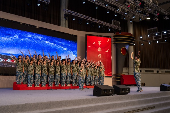 各连队依次登台演唱经典曲目。从《明天会更好》《少年中国说》的青春憧憬,到《我和我的祖国》《我的中国心》的家国深情,再到《保卫黄河》《强军战歌》的铿锵誓言,同学们用嘹亮激昂的歌声表达对祖国的深切热爱与对革命先辈的崇高敬意。台上台下歌声呼应,现场气氛高潮迭起,充分展现了集体的强大凝聚力与蓬勃朝气。